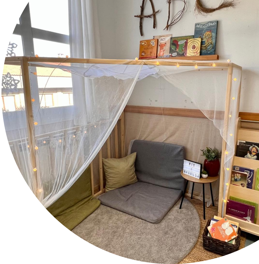Estructura de madera, se adapta el diseño al espacio del que dispongas para este uso. Haz de tu aula un lugar con espacios agradables con rincones como este. Solicítanos un diseño personalizado para tu “rincón zen”.
