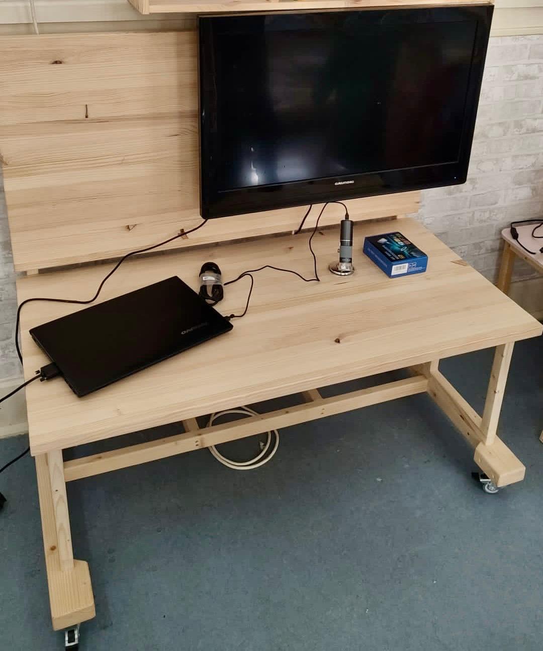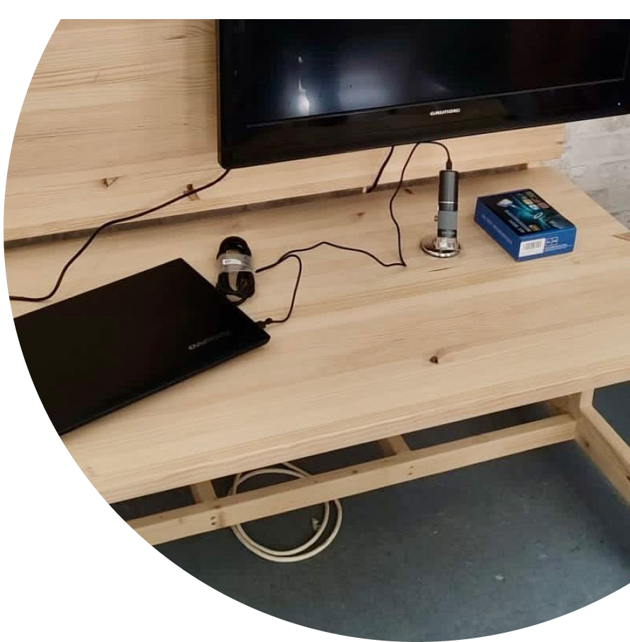 Estructura de madera donde soportar TV, ordenador o tablet y microscopio. Diseño con ruedas para una movilización sencilla y práctica enfocado a poder visualizar contenido en cualquier lugar. Un mueble que se adapta a diferentes usos y que te otorgará un rincón especial en tu espacio educativo.