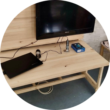 Muebles y estructuras de madera fabricados de forma artesanal para centros escolares o espacios educativos.