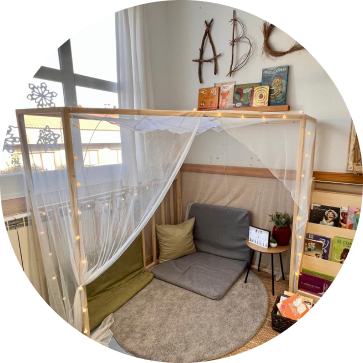 Haz de tu aula un lugar con espacios agradables con rincones como este. Se adapta el diseño al uso.