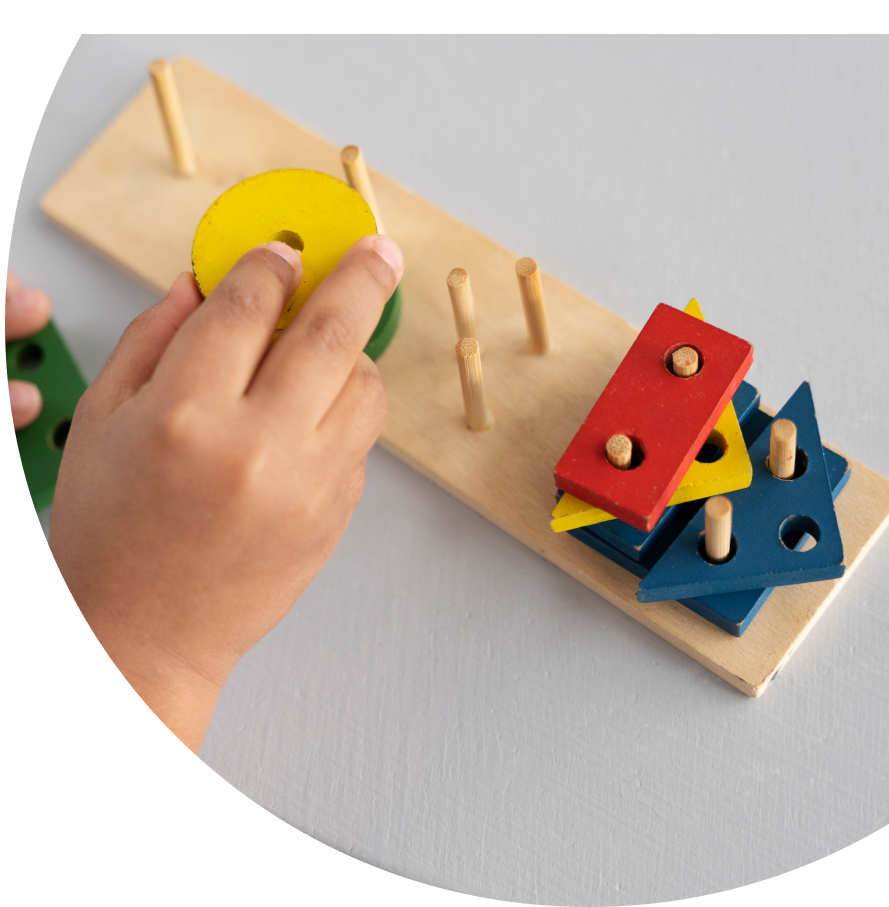 Materiales y mobiliario fabricado en madera destinados al desarrollo de la motricidad fina y gruesa y a un mejor conocimiento corporal.
